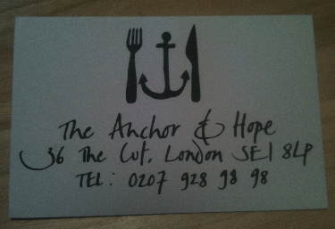- The Anchor and Hope, The Cut, Waterloo (no website) – Popular spot. No bookings taken. Prepare to wait & then share a table with other diners.