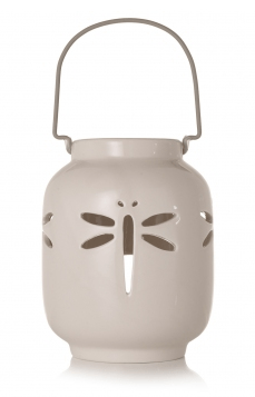 - Oliver Bonas Dragonfly Hurricane Lamp – Pretty cream ceramic lamp with cut-out dragonflies for indoors/out @ £14.