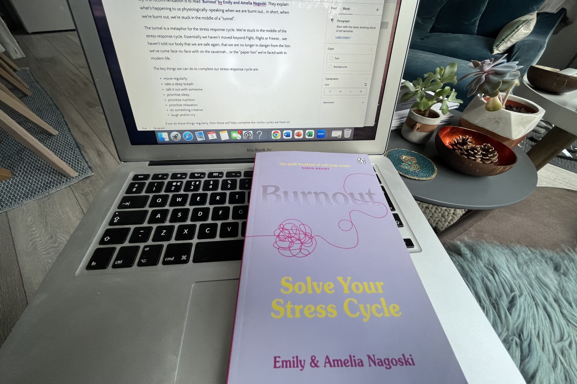 My first recommendation is to read ‘Burnout’ by Emily and Amelia Nagoski. They explain what’s happening to us physiologically-speaking when we are burnt out… in short, when we’re burnt out, we’re stuck in the middle of a “tunnel”.