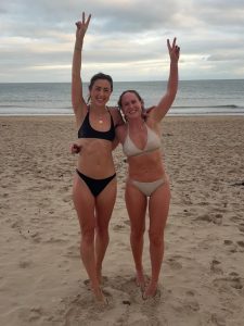 It’s also bonding stuff connecting with others in nature – braving a cold dip together in the sea after sweating the toxins out in the heat… (here we are pictured back at Sandbanks on New Year’s Day with Helena, photo courtesy of Siobhan).